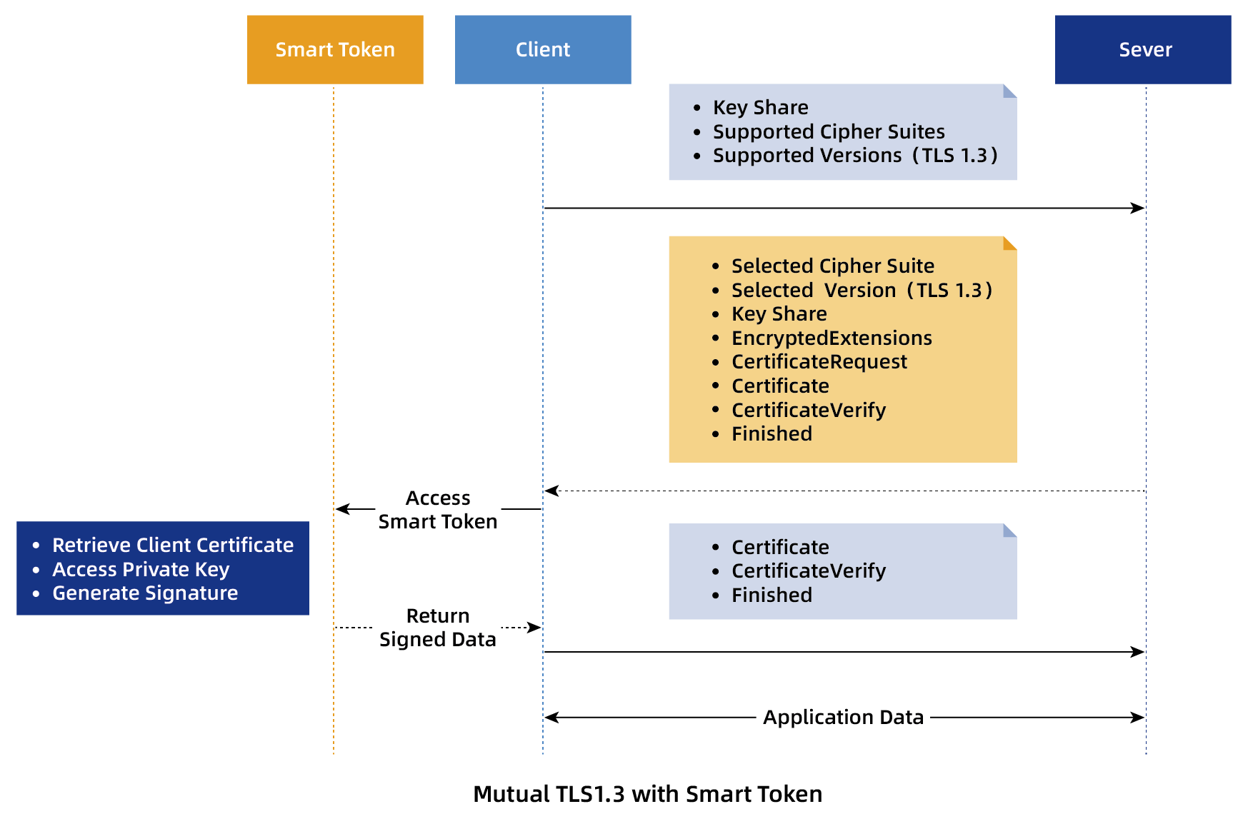 TLS 1.3, avec sa haute sécurité et sa faible latence, est devenu le protocole préféré pour les communications réseau modernes. Combiné à la protection matérielle du Smart Token de Watchdata, le mécanisme d'authentification mutuelle fournit des garanties de sécurité fiables pour les scénarios de haute sécurité tels que la finance et les affaires gouvernementales, servant de composant clé dans la construction d'un environnement de réseau de confiance.
